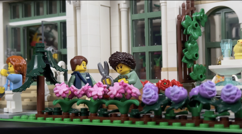 Starting with the characters, this set includes a diverse mix of 12 minifigures. Among them are two gardeners who keep the grounds pristine, a barista to run the café, and even a garden director who bears a striking resemblance to the fan designer (perhaps just a fun coincidence?). The visitors range from families and elderly couples to a photographer and even a person with visual impairment, giving the garden a lively and inclusive vibe. Some of the minifigures have dual expressions, which adds a fun element of surprise, especially the little one who looks slightly disappointed after picking an off-limits flower!