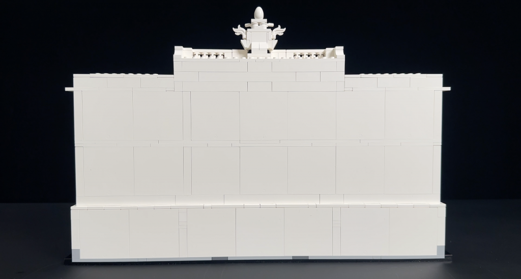 Another omission is the lack of carved inscriptions found on the real Trevi Fountain. In reality, several Latin inscriptions are carved into the facade, but LEGO left these out, opting for plain white tiles instead. Even stickers could have added more authenticity.