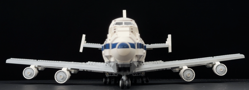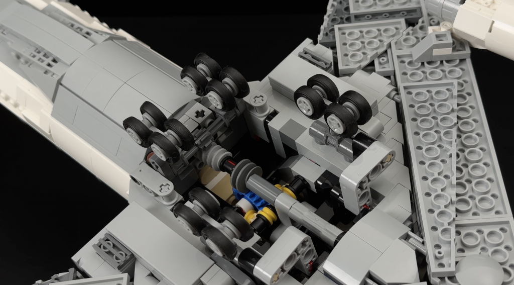 The landing gear, one of the set’s few moving features, is linked so that turning one wheel retracts all three sets of gear simultaneously. This is necessary when placing the 747 on its display stand. While the system works, it’s a bit finicky and doesn’t feel quite as polished as the one used in LEGO’s Concorde set.